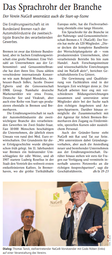 Wir freuen uns sehr, dass die zweitgrößte und vielfältigste Branche Bremens in der international renommierten Lebensmittel Zeitung Gehör findet.